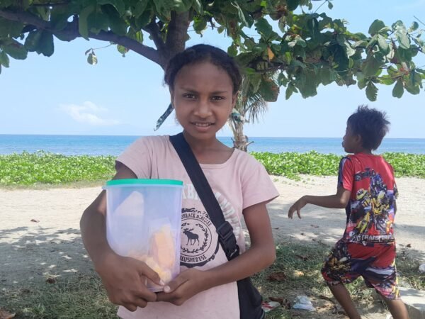 Dili, 28 Outobru 2024 (Média Democracia) – Marcelina Oleveira ho idade sia (9) mai husi Munisípiu Lautem no daudaun ne’e hela iha Pante-kelapa, Eskola Premaria Lurumata klase (4) iha tempu ferias sempre halo atividade negósiu ki’ik hanesan fa’an haas tuir dalan ninin.
