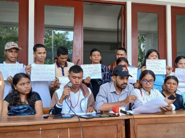 Dili, 17 Marsu 2025 (Média Democracia) – Asosiasaun Akadémika Estudantíl, Universidade Nasionál Timor Lorosa’e realiza konferénsia imprensa hodi manifesta sira-nia lamentasaun hasoru estrutura universidade no Asosiasaun Akademika Estudantil UNTL, ne’ebé organiza prosesu inskrisaun iha Universidade Nasional Timor Lorosa’e UNTL Tinan 2025.