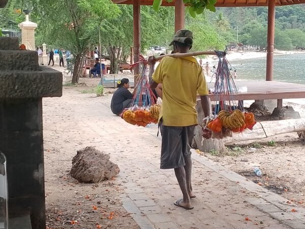 Dili, January 8, 2025 (Média Democracia) – João dos Santos, 45 years old from Liquidoe, Aileu, now lives in the Taibesi Market, his daily activity is that he runs from Taibesi to Cristo-Rei to sell fruits on the side of the road.