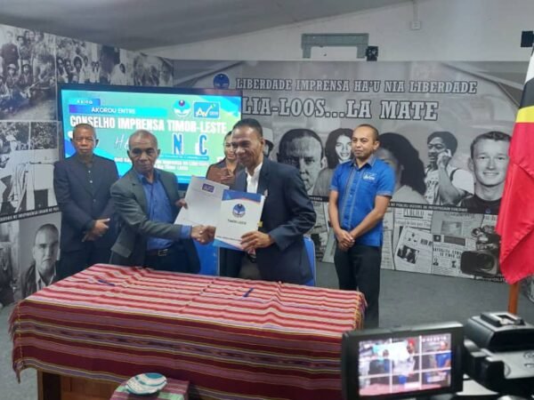 Díli, 22 Janeiru 2025 (Média Democracia) – Konsellu Imprensa K.I asina akordu ho Autoridade Nacional de Comunicação (ANC) hodi hametin Liberdade Imprensa no Liberdade Espresaun iha Timor-Leste, asina akordu ne’e hala’o iha salaun konsellu Imprensa, Quintal-Boot Díli.