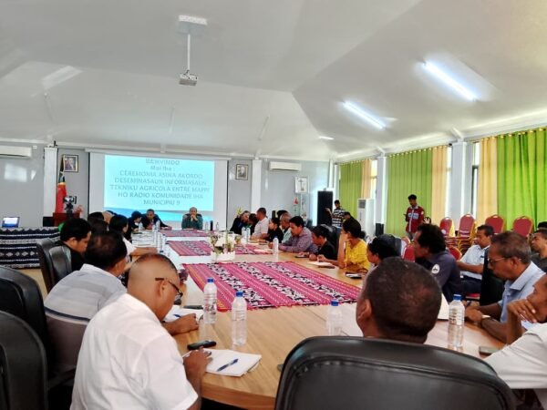 “Asina akordu hamutuk ho Radio komunidade iha Munisipiu sia (9) Ili Wain-Manatutu, Maliana-Bobonaru, Tatamailau-Ainaro, D. Boanventura Manufahi, Cova Taroman-Covalima Povu Viqueque-Viqueque, Lospalos-Lautem Lian Matebian-Baucau, no Atoni Lifau-RAEOA, nia objetivu atu fahe Desiminasaun no informasaun ba komunidade sira iha teritoriu tomak, Liu Liu iha Munisipiu sia (9) ne’ebe mak asina akordu Ida ne’e ba dezenvolvimento iha setór Agrikultura, Pekuaria Peskas e Floresta ne’ebé iha teritoriu tomak . Objetivu akordu Ida ne’e atu bele kesi entre Ministeriu Agrikultura, Pekuaria, Peskas e Floresta ho Radio komunidade Sira iha Munisipiu hodi fahe informasaun ne’ebé ligadu ho Dezenvolvimento setór Agrikultura nian, hodi nune’e ita nia komunidade sira mos bele partisipa no bele fó sira nia kontribuisaun ba Dezenvolvimento setór Agrikultura nian iha nasaun Ida ne’e.Dehan Sekretariu Estadu Floresta Fernandino Viera da Costa iha salaun MAPPF (15/04/2026).