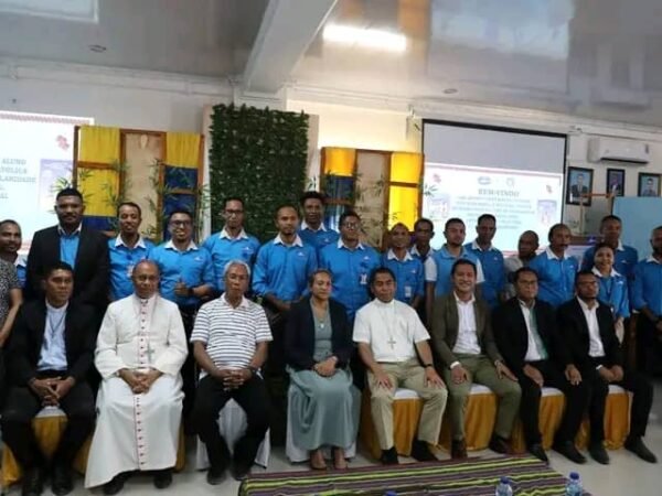 Dili, 29 Setembru 2025 (Média Democracia) – Ministeriu Edukasaun hamutuk hamutuk ho Igreja Katolika Timor-Leste realiza atividade hodi halo lansamentu ofisial ba manual alunu nian 8⁰ nomos 11⁰ anu, kona materia Edukasaun no Relijiaun Moral, iha Salaun ISFIT Fatumea, lansamentu ne’e Media Democracia asesu husi pajina Ministeriu Edukasaun, Sesta Semana kotuk, 26/09/2025.