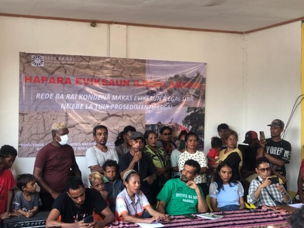 Dili, January 8, 2025 (Média Democracia) – Rede Ba Rai Consider the actions taken by SEATOU is brutalism and agaisnt acts of the destruction of the houses of the people in Fomentu II. This press release was held at the Haburas Foundation Hall, Farol, Dili.