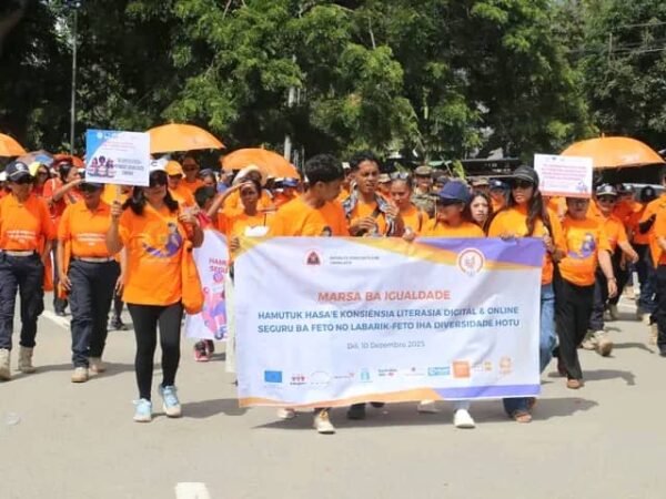 Dili, 12 Dezembru 2025 (Media Democracia) – Sekretáriu Estadu Igualidade (SEI) no Fokupers hamutuk ho maluk feto, mane hala’o marsa hahú husi rotunda Saudozu Nicolao Lobato Comoro ba sentru saúde Golgota liubá rai kotu remata iha área Tasi 3 hodi selebra loron 16 ativísmu kontra violensia hasoru feto, iha Timor-Leste.