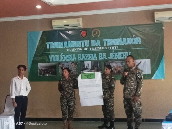 “Treinamentu ida ne’e hala’o tanba iha liña koordenasaun husi F-FDTL ho SEI atu fahe materia sira ne’ebe liga liubá iha violensia bazeia ba generu no violensia sira seluk ne’ebé sempre akontese iha sosiedade nia leet liuliu iha familia nomos iha instituisaun F-FDTL no instituisaun seluk.” Dehan Kapitaun Marquita da cunha
